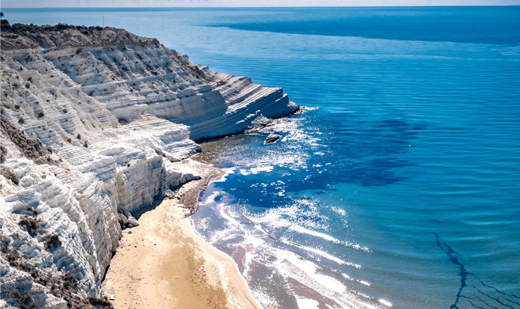 '터키인의 계단'이라는 뜻의 이름처럼 파도가 겹겹이 쌓인 듯한 새하얀 석회암 절벽이 지중해의 푸른 바다와 대조를 이루며 장관을 연출하는 자연 명소입니다.