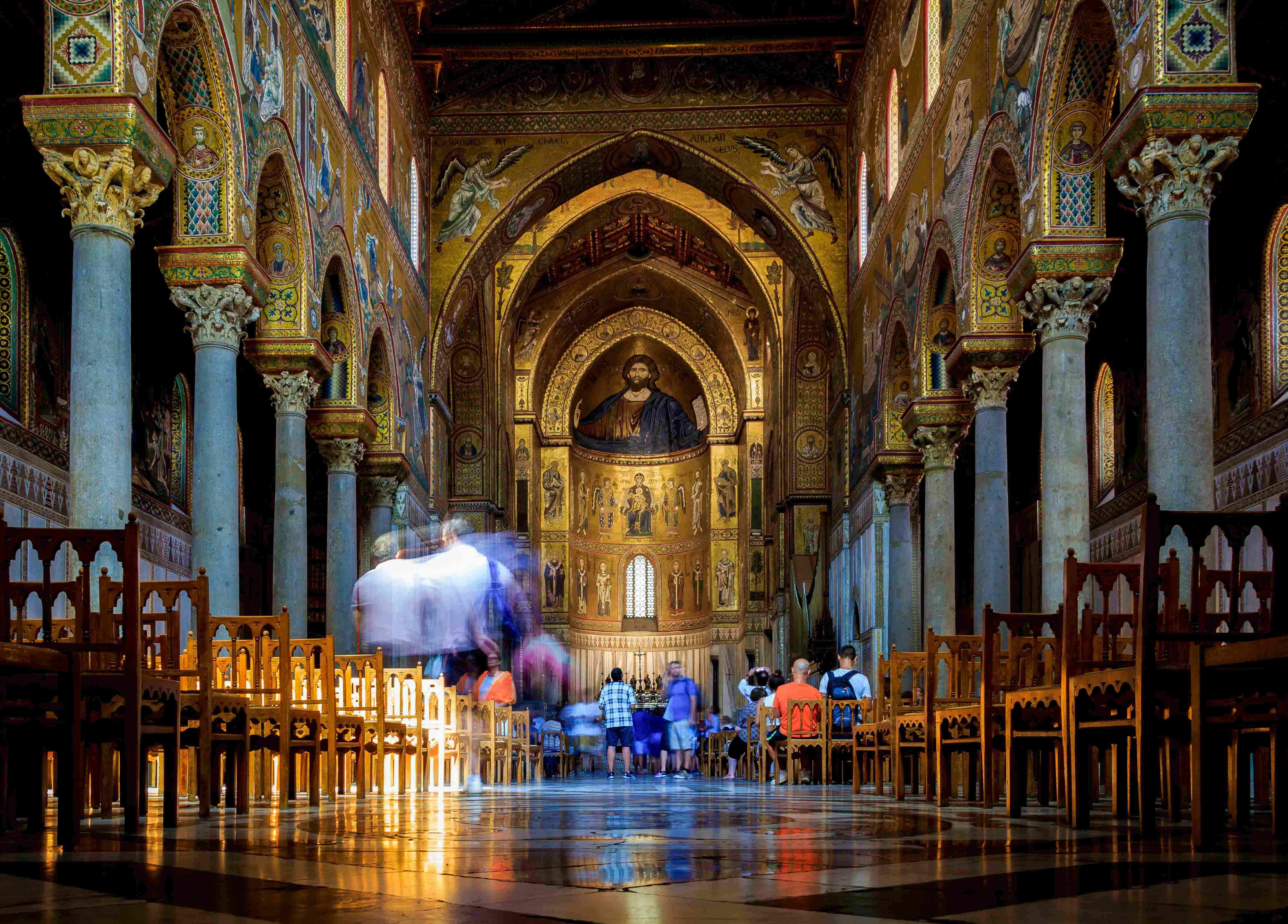 몬레알레 대성당은 내부를 가득 채운 황금빛 비잔틴 모자이크로 세계적인 명성을 자랑합니다.