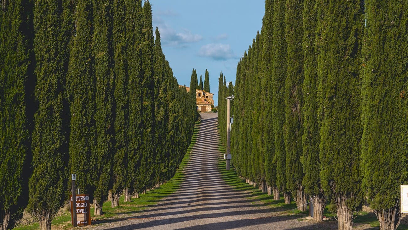 영화 <글래디에이터>의 주인공 막시무스의 집 촬영지입니다. 사이프러스 나무가 두 줄로 늘어서 있는 곳에서 인생샷을 남겨보세요.