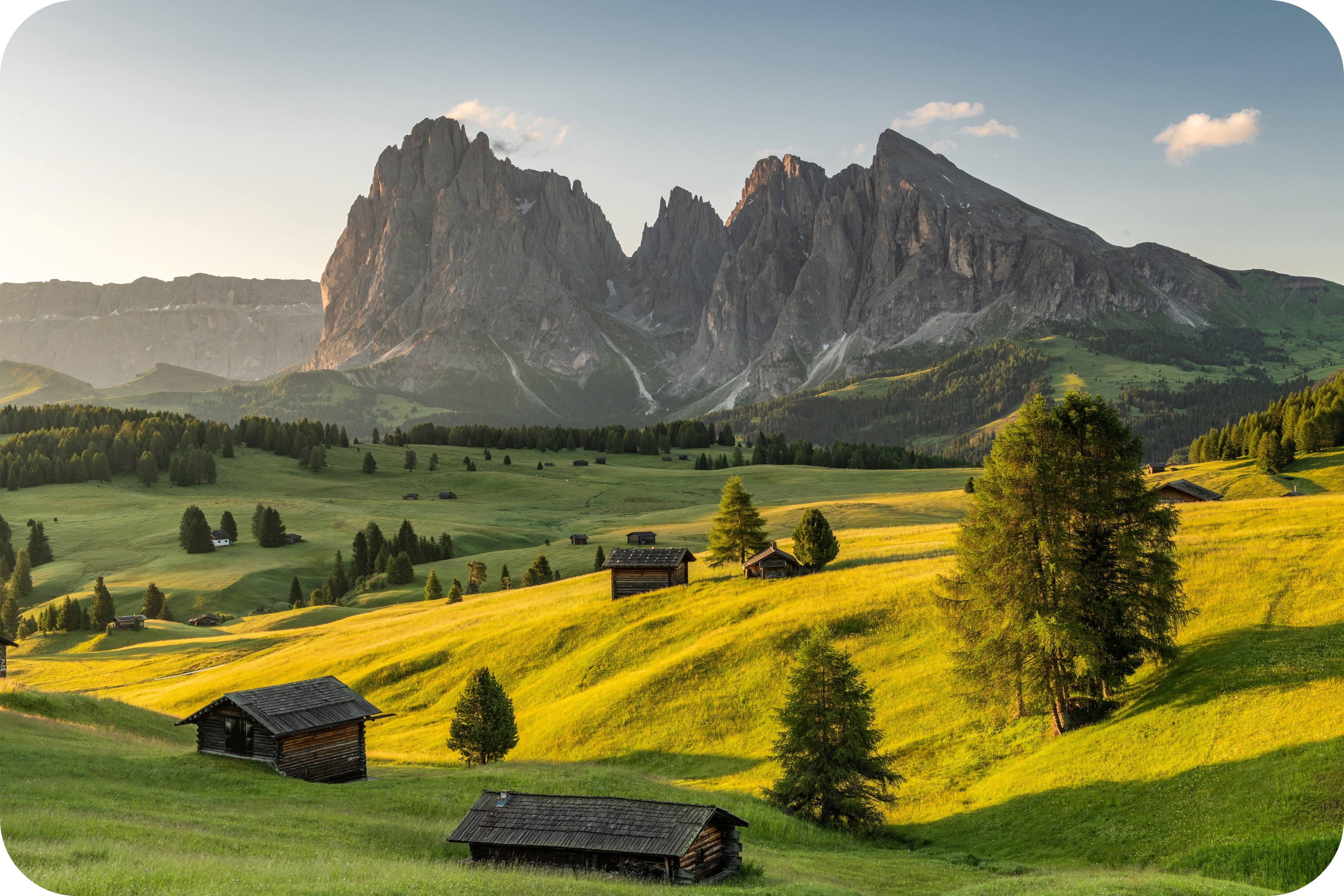 유럽에서 가장 넓은 고산 초원인 알페 디 시우시는 약 56㎢로, 축구장 수천 개에 달하는 규모를 자랑합니다. 완만한 지형 위로 돌로미티의 암봉들이 시원하게 펼쳐져 걷는 내내 시야가 탁 트입니다. 알페 디 시우시의 압도적인 스케일과 자연환경을 체감하며 여유로운 트레킹을 즐겨보세요.