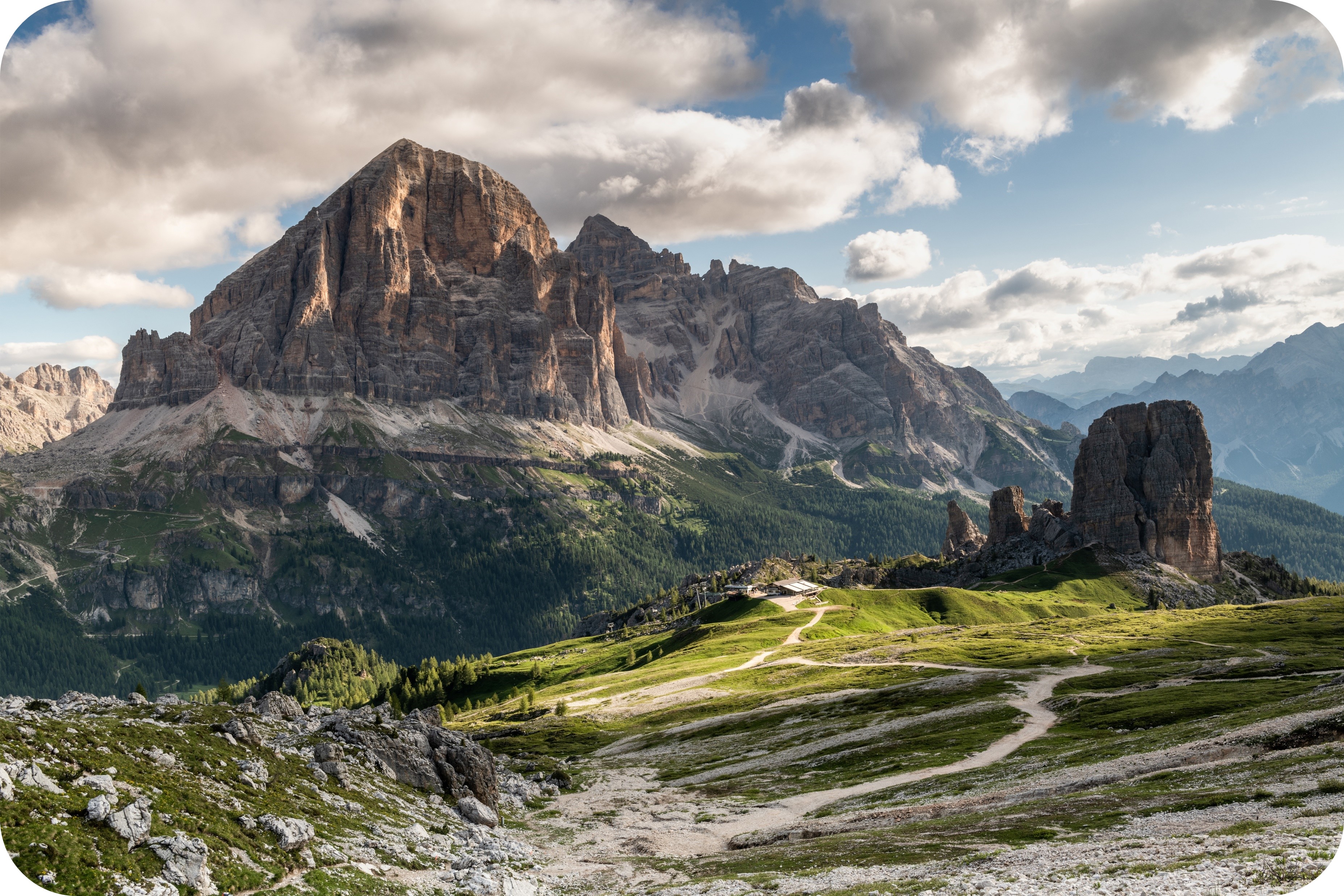 친퀘토리(Cinque Torri)는 다섯 개의 거대한 바위 기둥이 모여 형성된 독특한 암석 지형으로, 돌로미티에서도 형태가 가장 뚜렷한 산군 중 하나입니다. 비교적 완만한 접근과 달리 가까이에서 마주하는 암탑들은 압도적인 존재감을 드러냅니다.