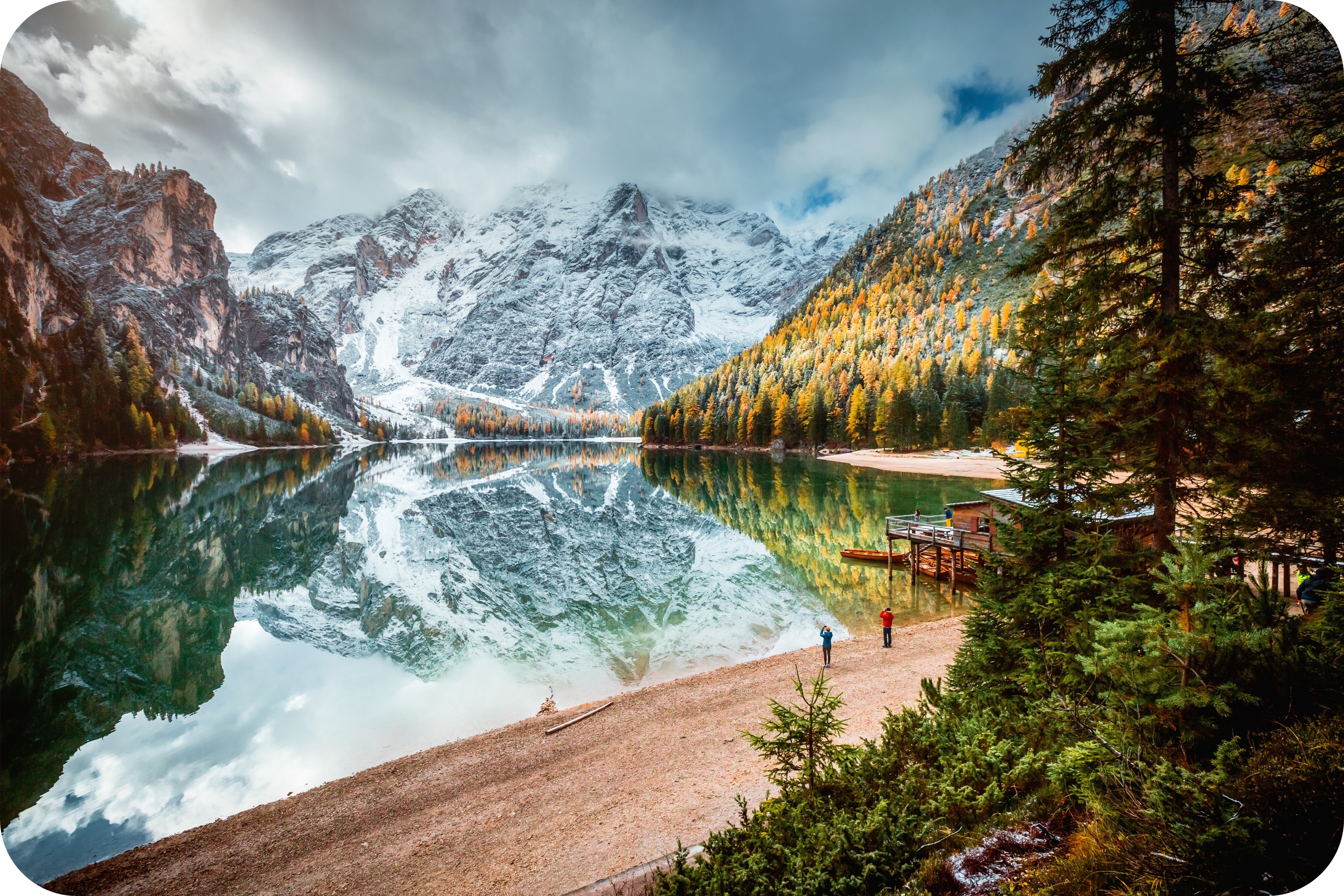 브라이에스 호수는 에메랄드빛 호수와 수직으로 솟은 암벽이 어우러진 풍경으로, 돌로미티를 대표하는 상징적인 장소입니다. 잔잔한 수면 위로 주변 산세가 그대로 비쳐 계절과 날씨에 따라 전혀 다른 분위기를 만들어냅니다. 돌로미티의 웅장함과 섬세함을 동시에 담아낼 수 있는, 가장 인상적인 풍경 중 하나로 꼽힙니다.