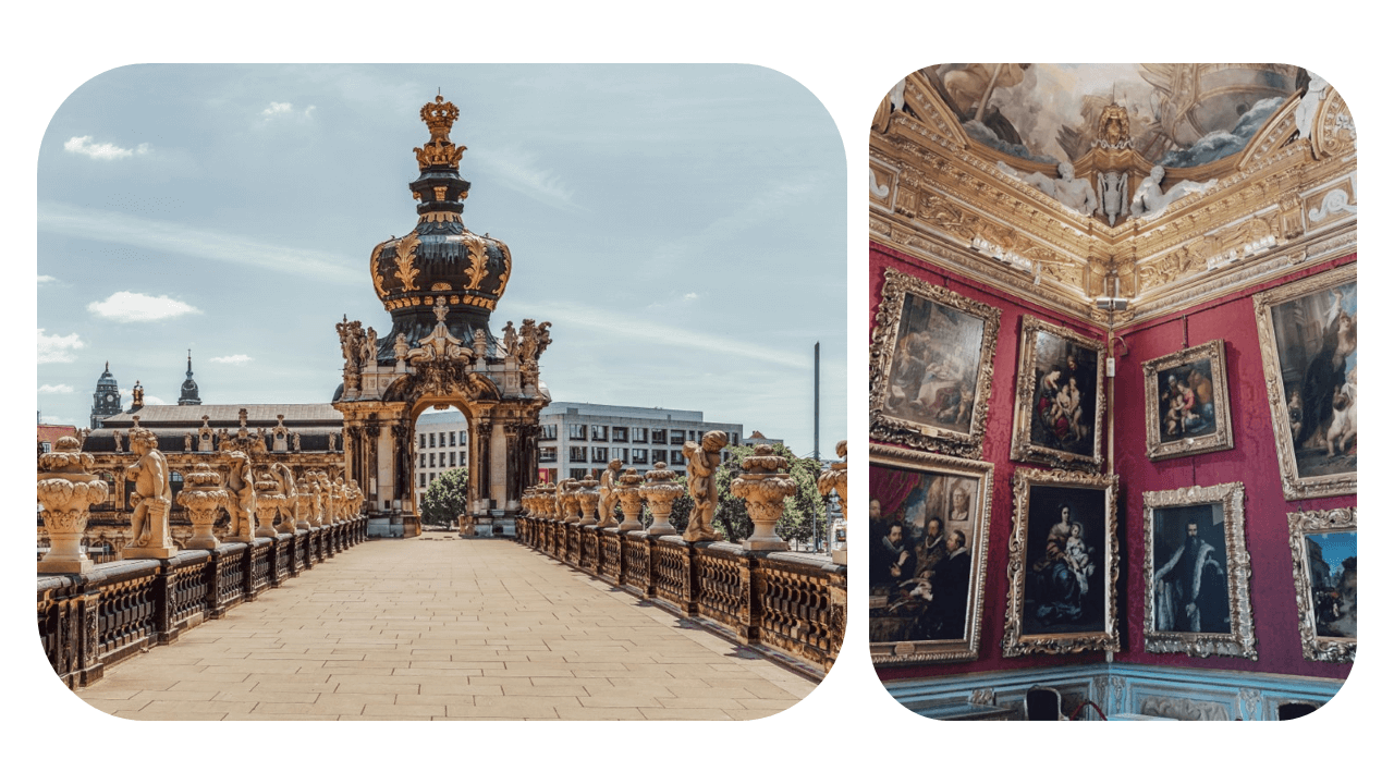 타 패키지에서는 츠빙거 궁전만 방문합니다. 노마드는 츠빙거 궁전 내에 있는 미술관에 입장하여 르네상스 시대부터 바로크 시대까지 미술 사조를 한 눈에 볼 수 있습니다! 노마드와 함께 명화가 살아 숨 쉬는 역사적인 감동을 느껴보세요.