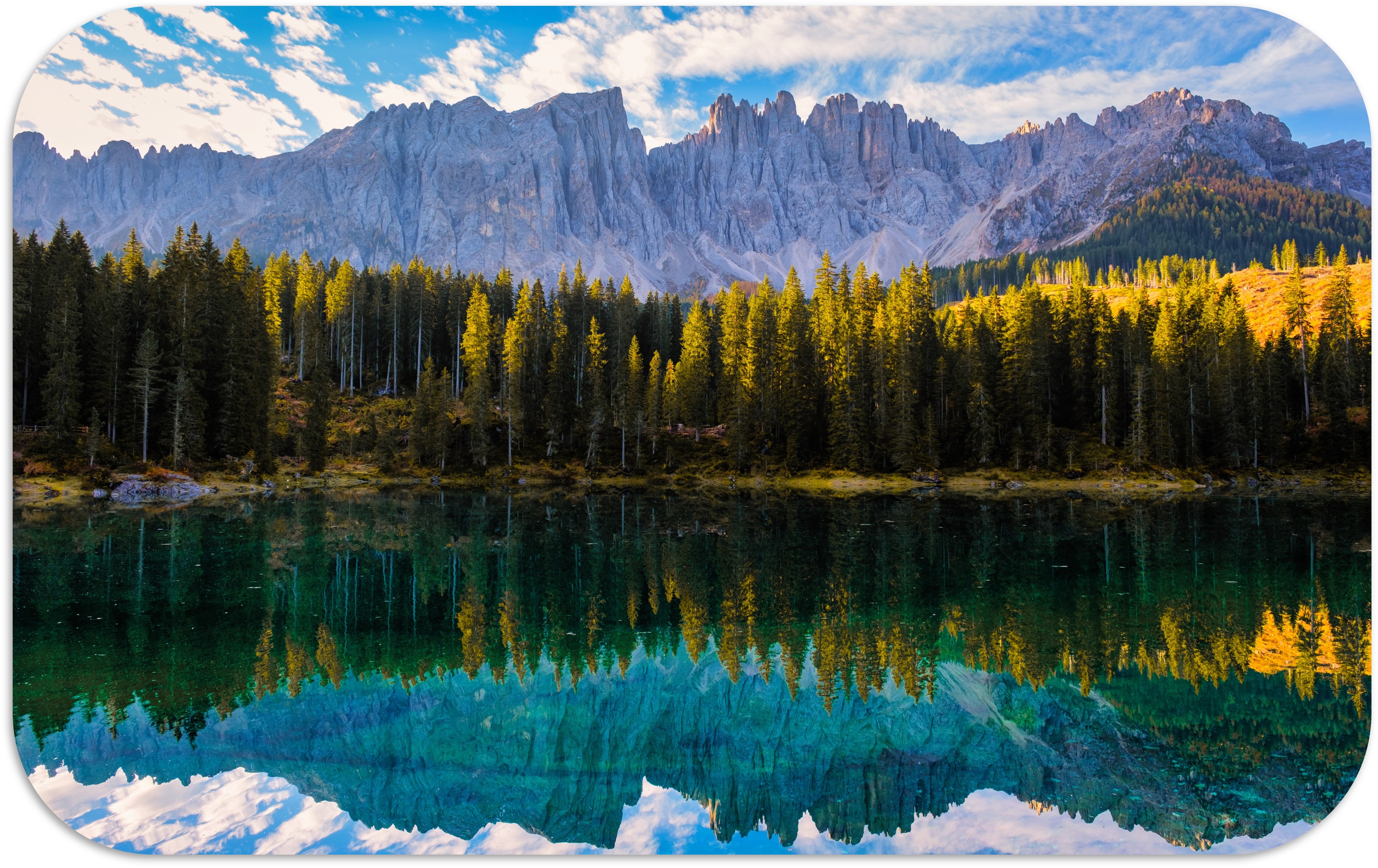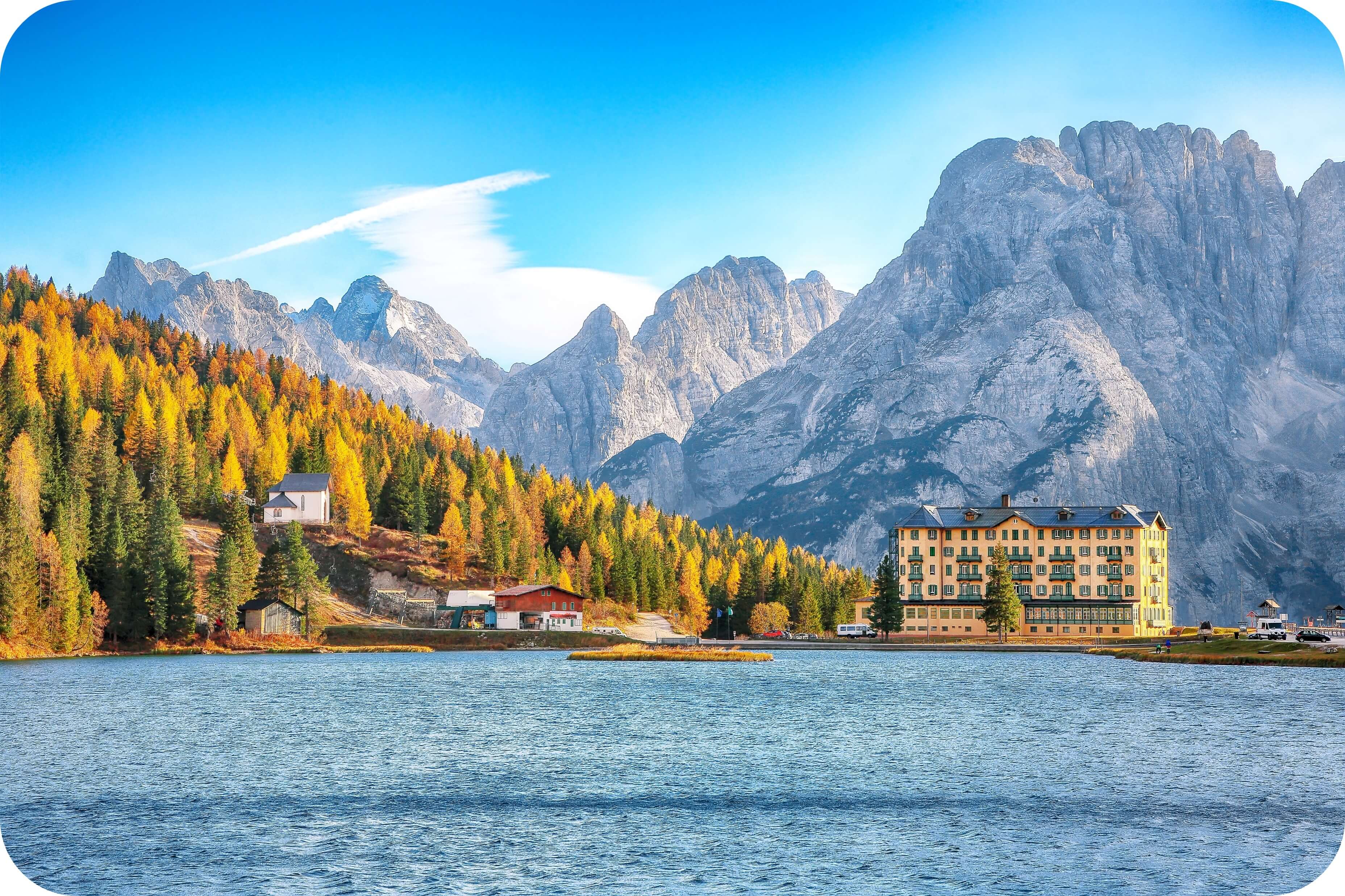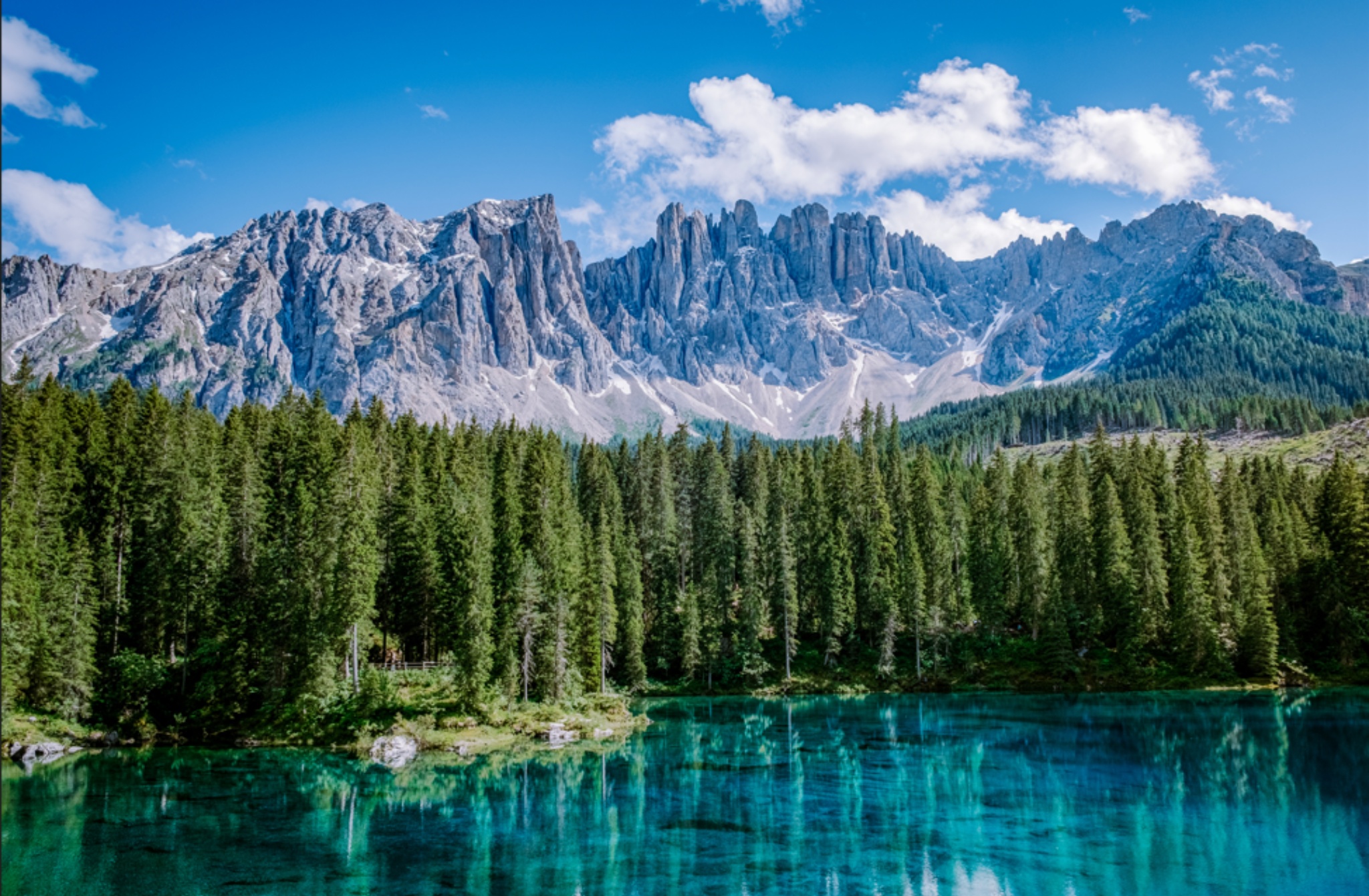 브라이에스 호수, 미주리나 호수와 함께 돌로미티 3대 호수 중 하나로 꼽히는 카레차 호수는 그 규모는 3대 호수 중 가장 작지만, 라테마르 산군을 고스란히 담아내는 에메랄드빛 수면 덕분에 단 몇 분 만으로도 여행자의 숨을 멎게 할 만큼 압도적인 신비로움을 선사합니다.