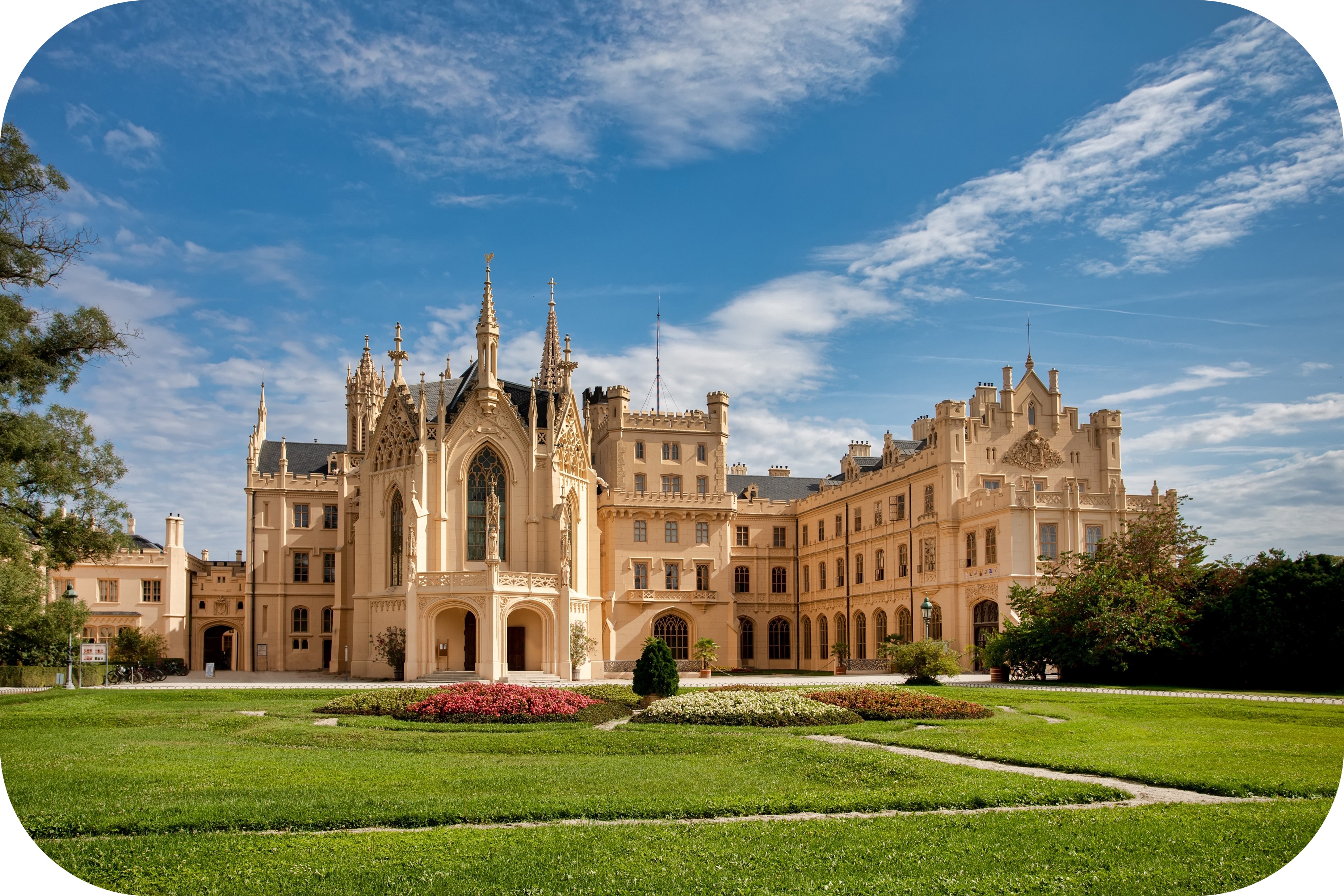 레드니체 성 : 유럽에서 가장 부유한 귀족 가문 중 하나였던 리히텐슈타인 가문이 여름 별궁으로 사용하던 네오고딕 양식의 아름다운 성입니다. 특히 화려한 내부 장식과 목조 계단, 샹들리에가 특히 인상적입니다.