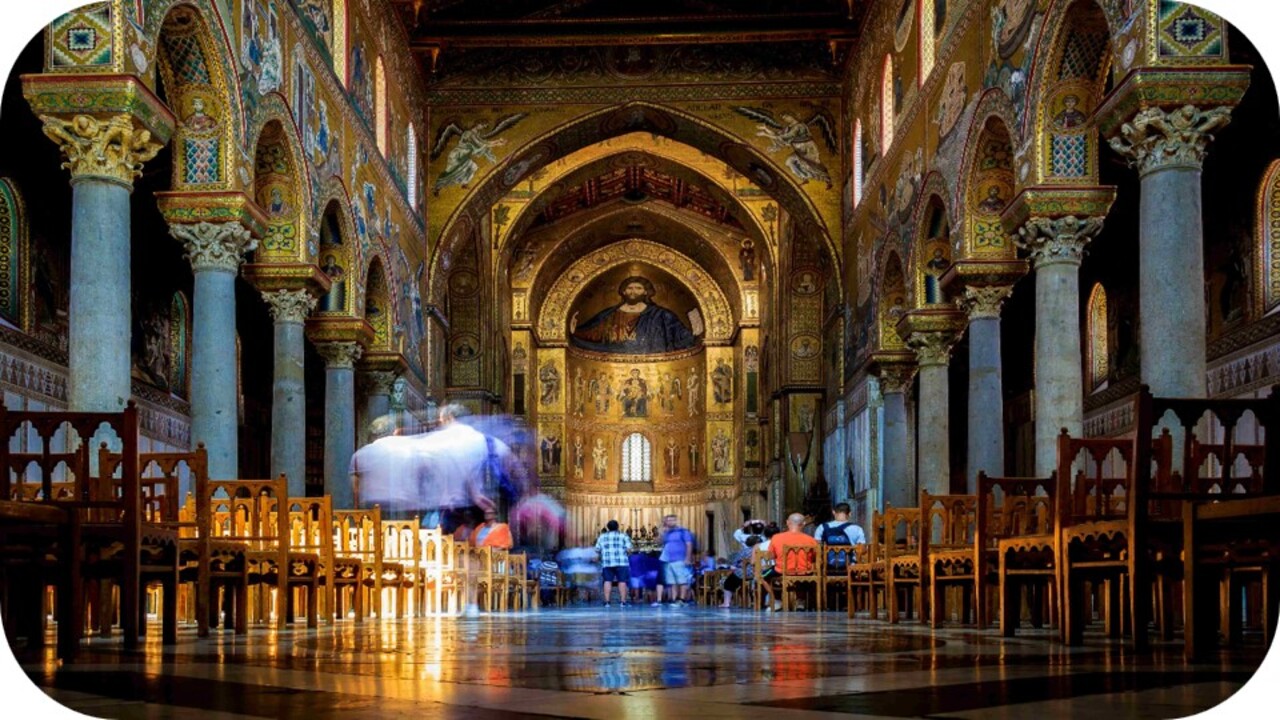 몬레알레 대성당은 내부를 가득 채운 황금빛 비잔틴 모자이크로 세계적인 명성을 자랑합니다.